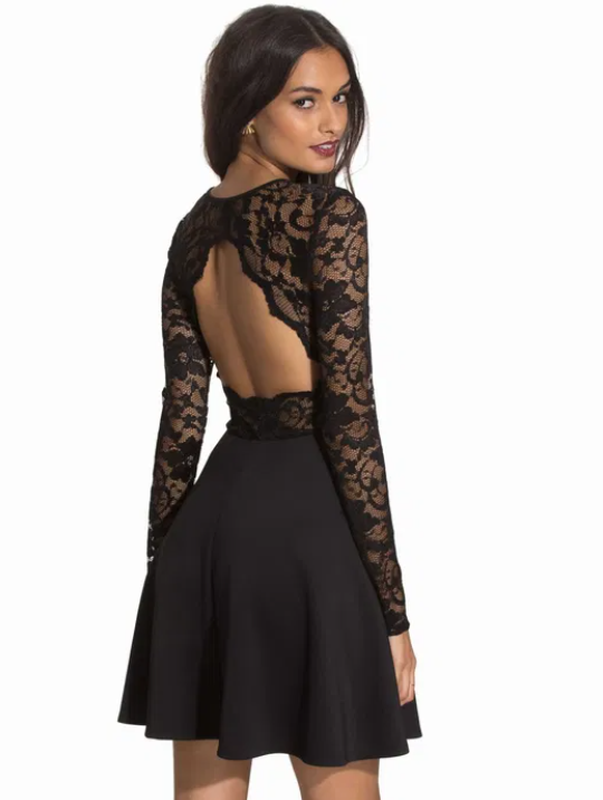 Нарядна святкова чорна сукня плаття з гіпюром відкрита спина мереживо nly one