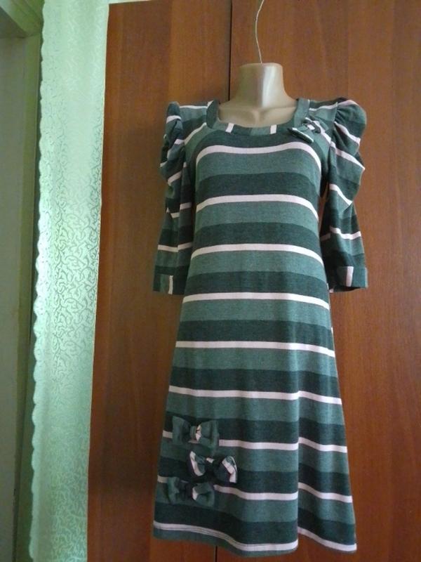 Гарна сукня з декором бантики. довжина 82 см, ПОГ 42 см, ПОТ 35 см, ПОС 42 см, рукав оригінального пошиву 45 см, Тканина добре тягнеться.