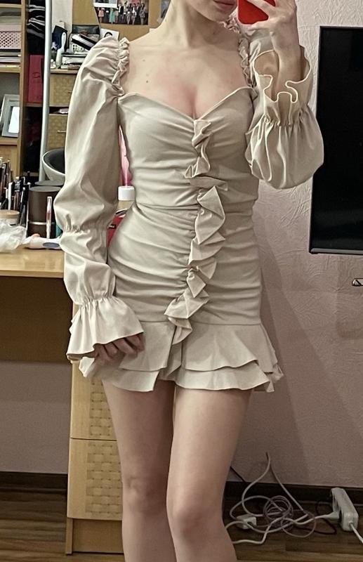 Платье бежевого цвета Размер указан UK10, US6, размер 38(M) но маломерит Одетая на рост 165, параметры 85/65/89 Лучше подойдет на более низкий рост 160-162