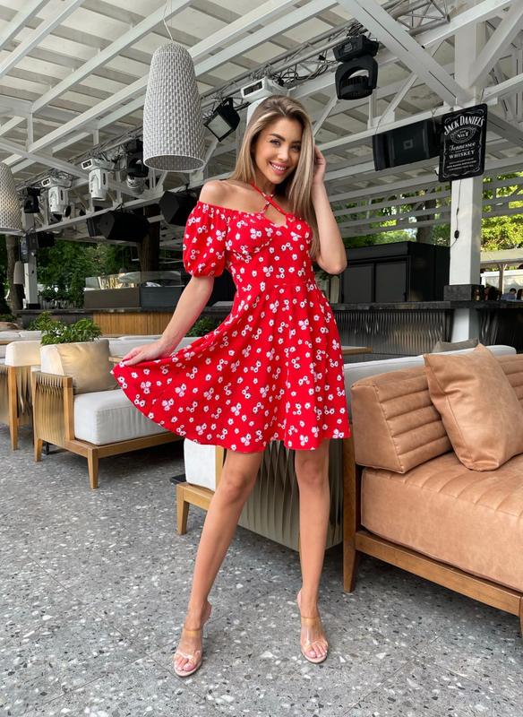 СУКНЯ 🔖👍🔖 Арт. SV 474 Тканина: євро-софт Колір : червоний Розміри: S, M, L, ХЛ, Опис: Ніжна і легка сукня з відкритими плечима. Довжина моделі міні з ліхтарики рукавами. (Ціна:590 грн