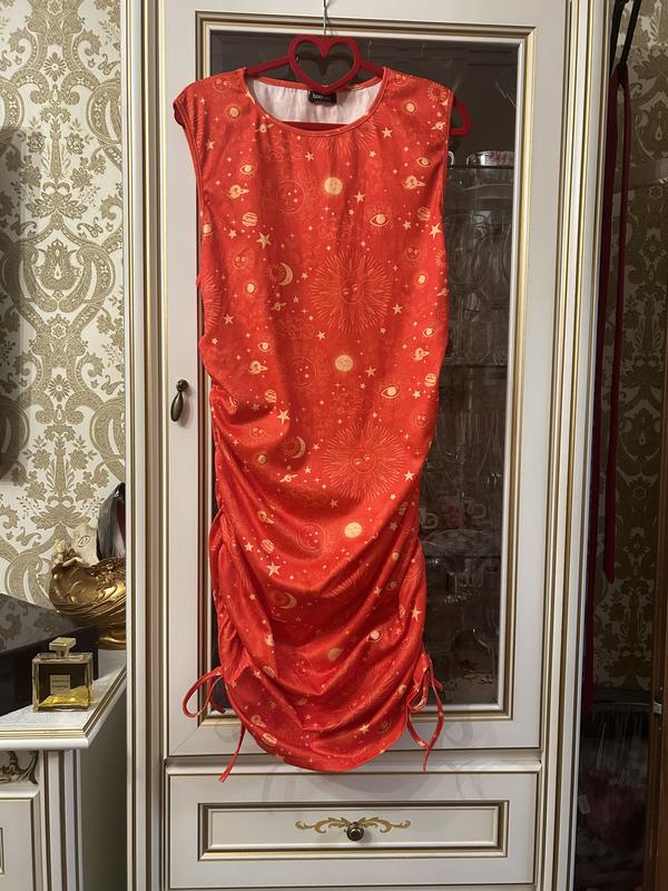 Платье в принт «Галактіка» Плечі - 40 ПОГ — 50 ПОТ - 44 ПОБ - 52 Довжина - 95 (приблизно) Дуже добре тягнеться Сідає по фігурі З боків стягнуто на резиночках Має вигляд нової речі, етикетки зрізали, не носили Виглядає класно, яскраво на літо