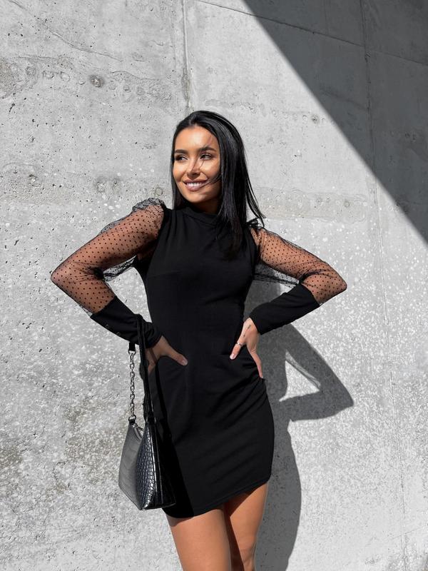 НОВИНКА💛 Плаття Мод. 1033 Фото вживу! Тканина: Джерсі + Сітка горох Чудова якість! Розміри: 42-44, 46-48