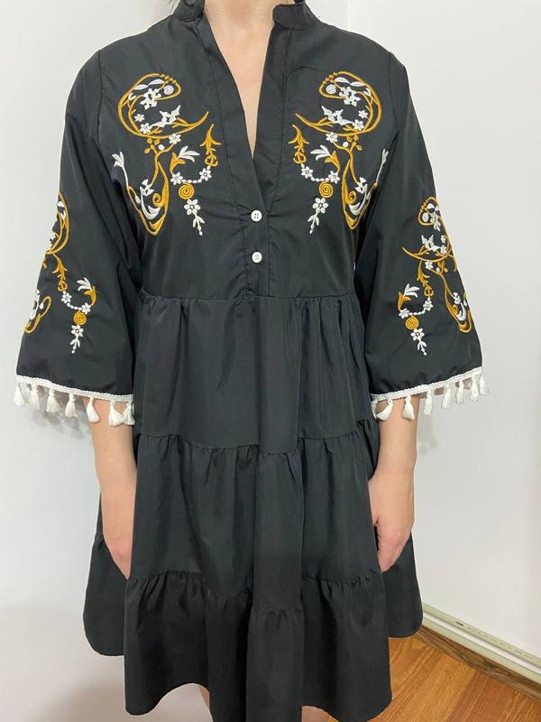 Чорне плаття з вишивкою. Ідеальний стан. Розмір S(26), довжина 95 см, плечі - 40 см. За деталями звертайтеся.