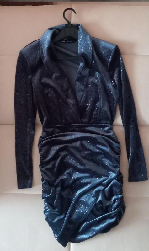 Класне плаття з плечиками. Бутилочного зеленого відтінку з блискітками. Збоків призібране, робить гарний силует. Є малюсінька полоска спереду внизу, але її практично не видно. Ззаду і рукава теж призібрані. При замовленні "продавцеві на карту" можлива додаткова знижка. За деталями звертайтесь в повідомлення.