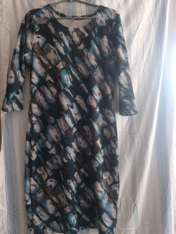 жіноче плаття на тоненькому утеплені, більш до флісу, розмір 50, довжина 100 см ширина під пахвами 60 см, рукав укорочений 43 см