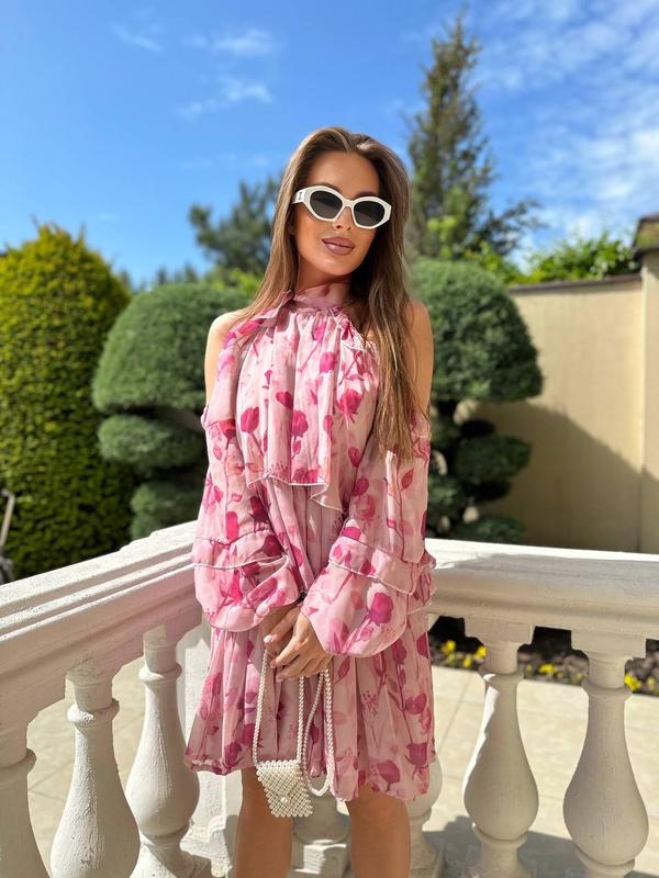 Повітряна літня сукня з відкритими плечима, з яскравим квітковий принтом🌷 Мод: 2079 Колір: рожевий Тканина: шифон на подкладці Розмір: універсал 42-44 Ціна 1250 грн