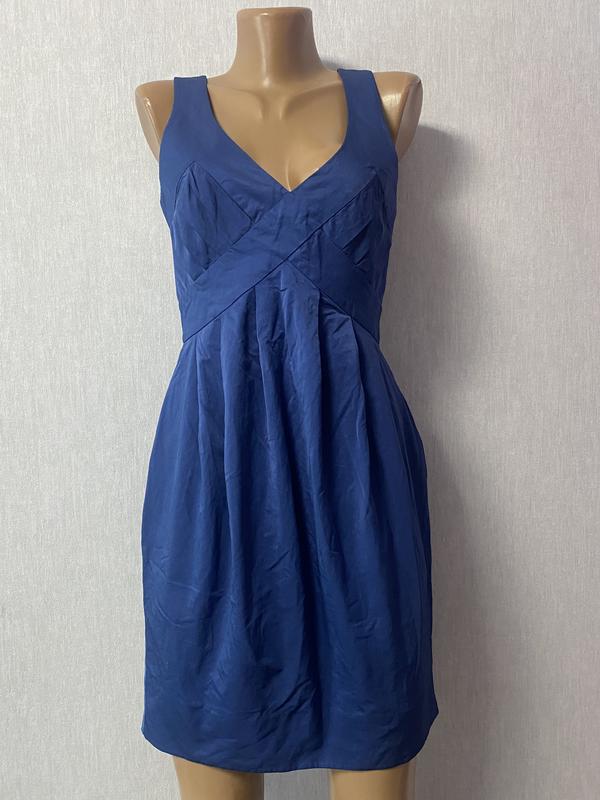 Крест-накрест и плиссированные детали на груди. Приталенная талия с юбкой-тюльпаном. Потайная боковая молния. На швах карманы, на спине вырез Длина 85 ПОГ 45 ПОТ 35 ПОБ 50