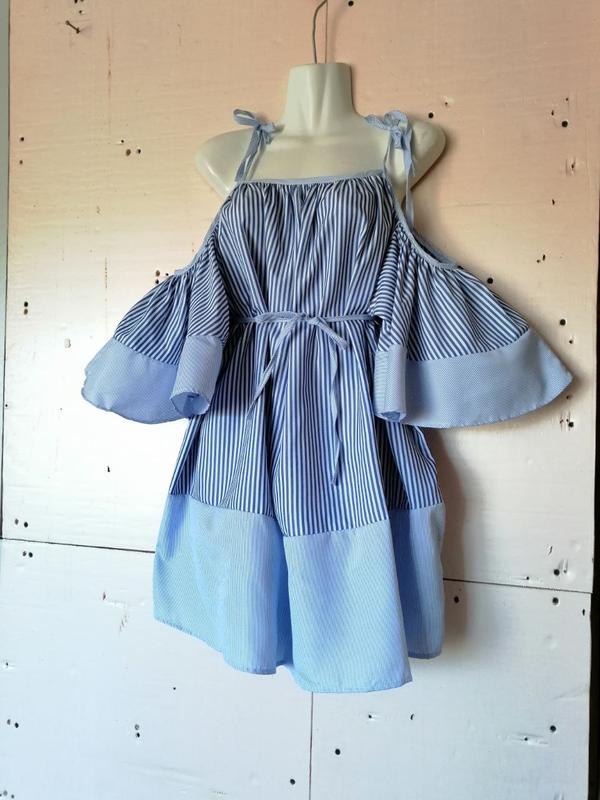 Пышная воздушное платье в полоску открытые плечи пышный волан с поясом