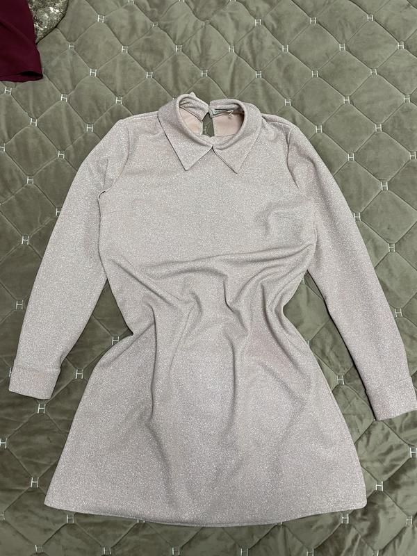 Сукня в ідеальному стані, розмір с-л універсальний . Довжина 89, пог 46, пот 47, бедра вільні, рукава 57, без підкладки, стрейчеве.