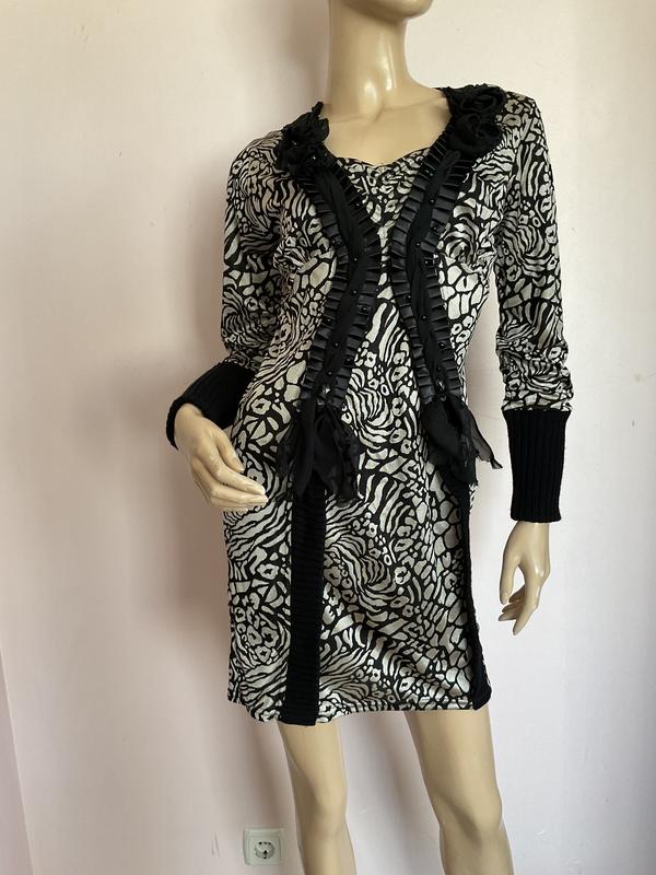 Оригинальное фирменное платье. Без подкладки. Тянется. Замеры в груди 48 см в талии 42 см в бедрах 48-49 см длина 85 см рукав 61 см в плечах 36-38 см 8:5:24
