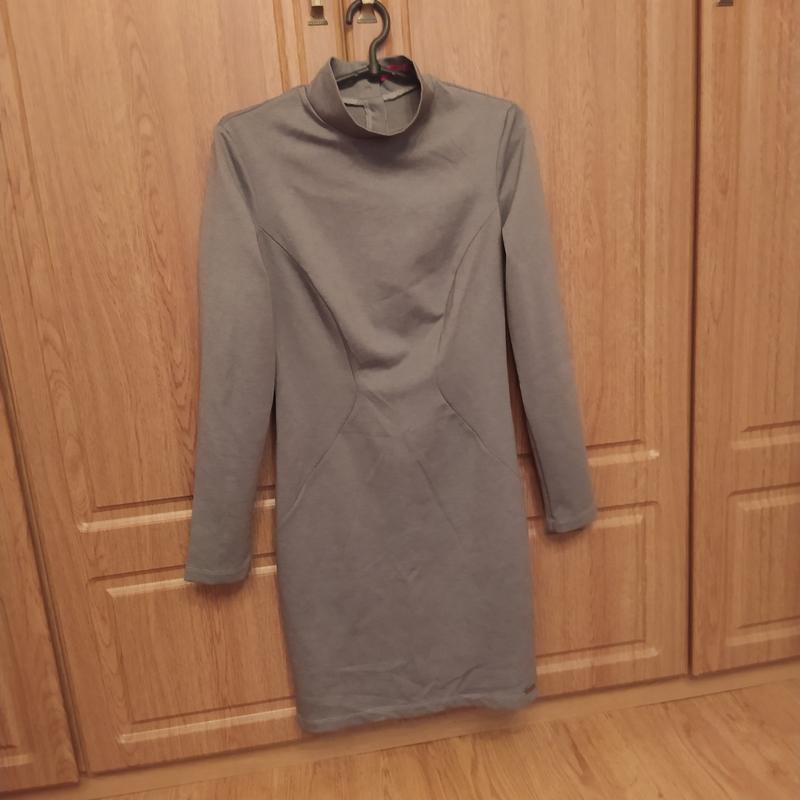 modus класичне плаття сукня modus сірого кольору. комір стійка завершується рядом гудзиків на шиї ззаду. пряме, по фігурі, злегка еластичне. ПОГ 45. довжина 90, рукав 59,5 см.