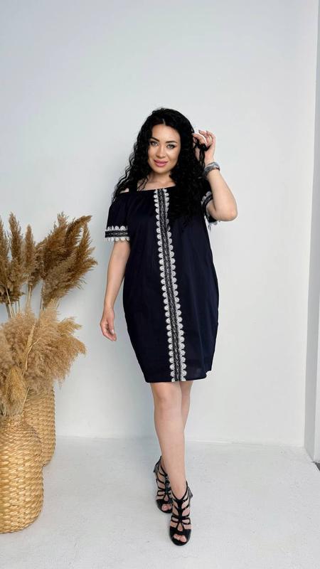 Сукня модель #1336 Тканина: турецький котон Розмір: 48-50,52-54,56-58,60-62 Колір: пудра, чорний, темно-синій, червоний Догляд: ручне прання до 30° Виробництво: Україна _____________________ Довжина 100 см мереживо чорно-біле але може відрізнятися малюнок