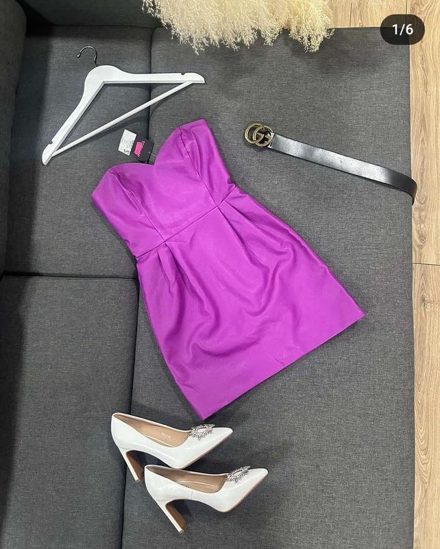 💗🔥Вау-ефект гарантовано… крута сукня-бюстьє з еко-шкіри в неповторному фіолетовому/ нова/ ціна на бірці 55$/ Topshop 6 р- xs Пог 40/42 см Пояс 30 /32 см Поб 44 /45 см Довжина від грудей 66 см