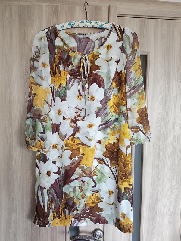 Неймовірна ніжна сукня в нарциси. Прямого крою, четвертний рукав на гудзиках, якісний бренд. Стан нової речі. Заміри довжина 84, пог 46, пот 45, поб 47, рукав 50