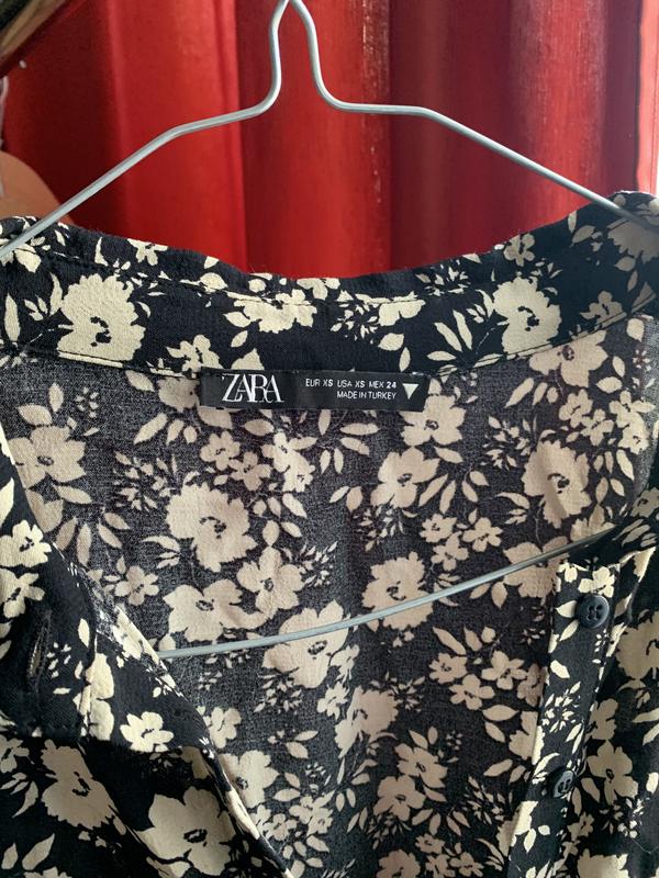Стильне та зручне плаття від Zara з цікавим принтом. Розмір XS , але воно досить широке , тому підійде на S Заміри: довжина 75 см (ззаду на кілька см довше) по талії 45 см 100% Віскоза