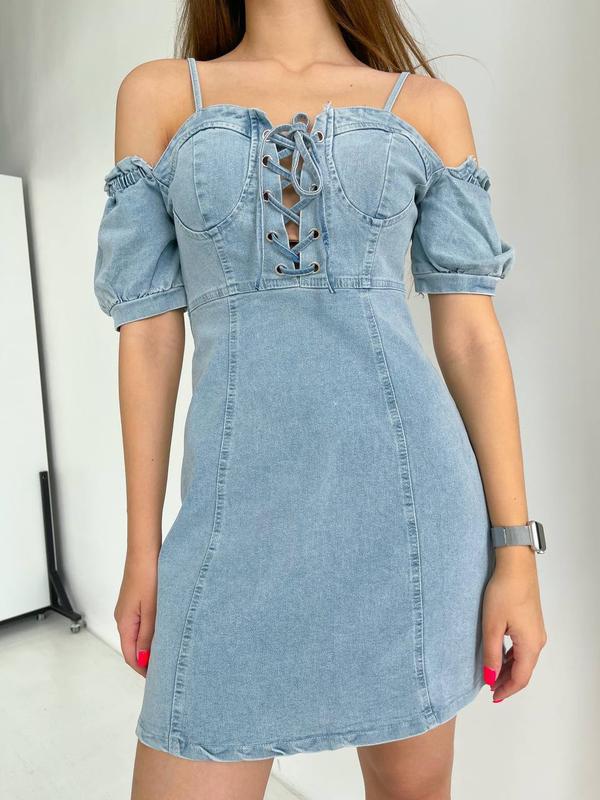Джинсова сукня на шнурівці❣️ Мод:630 Розмір: л Тканина: джинс коттон Довжина 80см