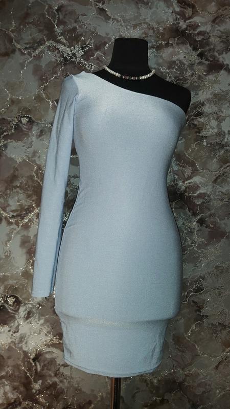 Жіноча сукня на свято, вечір, побачення. Елегантна. Тканина гарно переливається та блищить. Рукав на одне плече