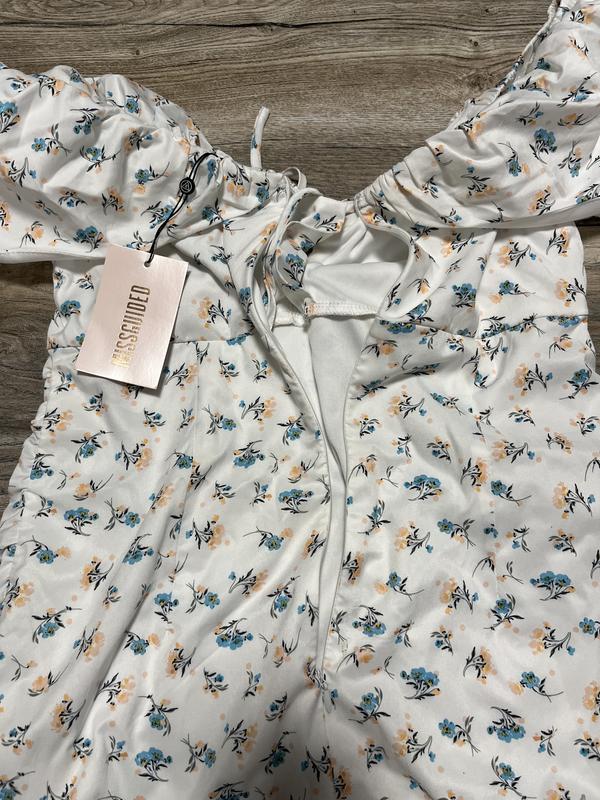 Нове плаття з бірками Білого кольору з квіточками Дуже ніжне Має підкладку Розмір повномірний м, можна л Ззаду на потайній змійці Збоку по фігурі йде збірочкою Плечі спадають гарно Дуже гарно виділяє ключиці Справді виглядає набагато краще ніж на фото Мій проліт по розміру