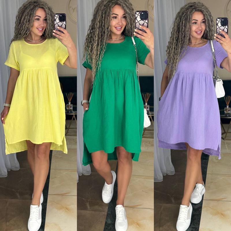 ✔️сукня Модель 656 ✔️Розміри: 42-46,48-52 Тканина: муслін Кольори: пудра , фреза , лаванда , олива , темний синій , лимон , оранж , трава , блакитний , малина Ціна : 950грн З боковими кишенями