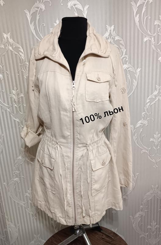 19 Стильне льляне поняття бренду Batty Barclay Склад: 100% льон Заміри: Плечі 43 см Рукав 60 см ПОГ 51 см ПОТ регулюється 46 см ПОБ 57 см По низу ПО 60 см Довжина від плеча 81 см