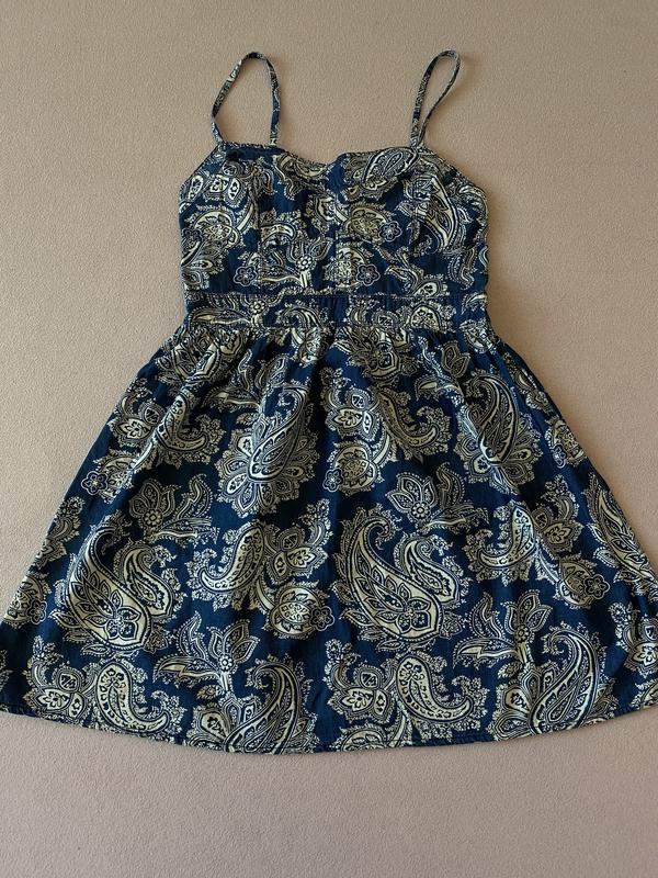 Дуже гарна сукня, тканина джинсового кольору, гарно тримає груди, довжина міні, на зріст до 165 сидить дуже комфортно, не надто коротка. Колір в житті гарніший ніж вийшов на фото.