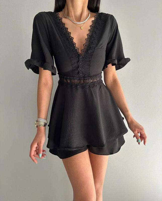 #Комбінезон з мереживом Артикул: 805-202 Колір: білий, чорний Розмір: 42-44, 46-48 Матеріал: креп жатка Фото Реал ВИМІРИ Замовити 💌