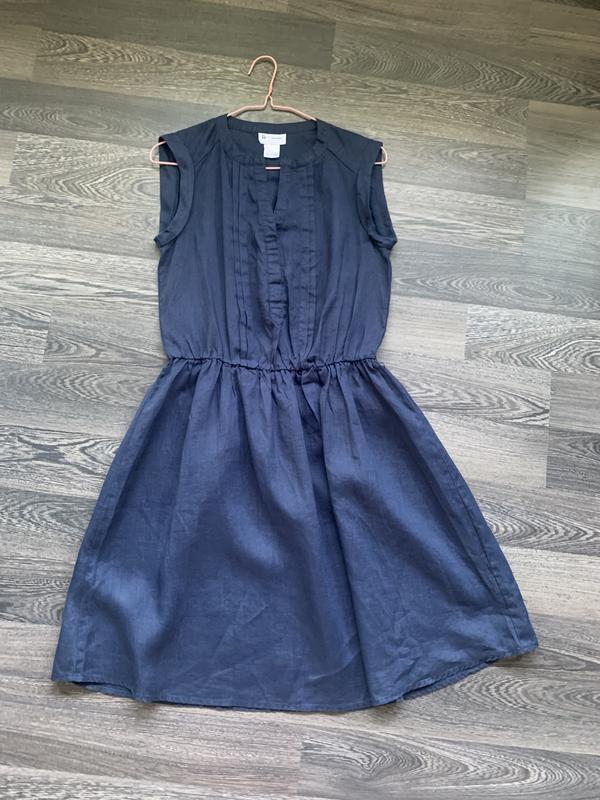 Сукня синього кольору У складі 55% льон, 45% рамі Довжина 94 см, напівобхват грудей 43 см, напівобхват стегон 67 см Стан ідеальний