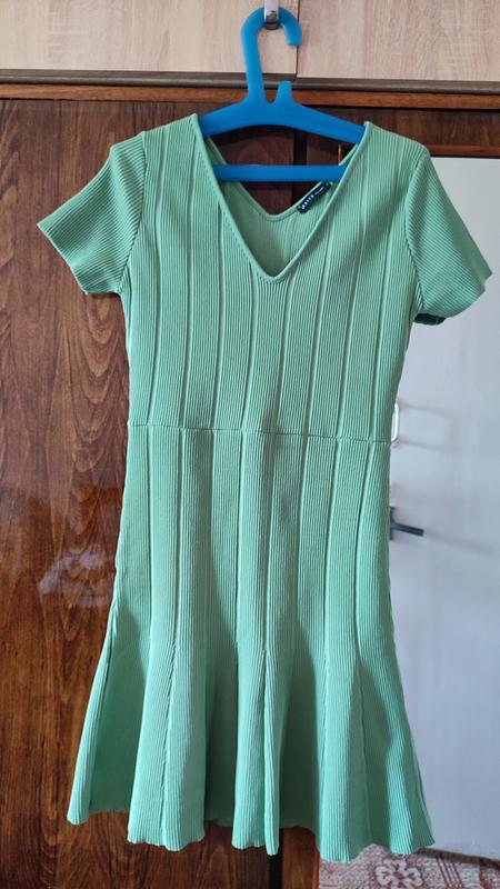 Тканина тягнеться Размер указан S (может быть больше) Замеры: Длина всего платья 95 см Полуобхват Грудь 40 см. Полуобхват Талия 36 см. Платье новое, одевало 1 раз, в идеальном состоянии