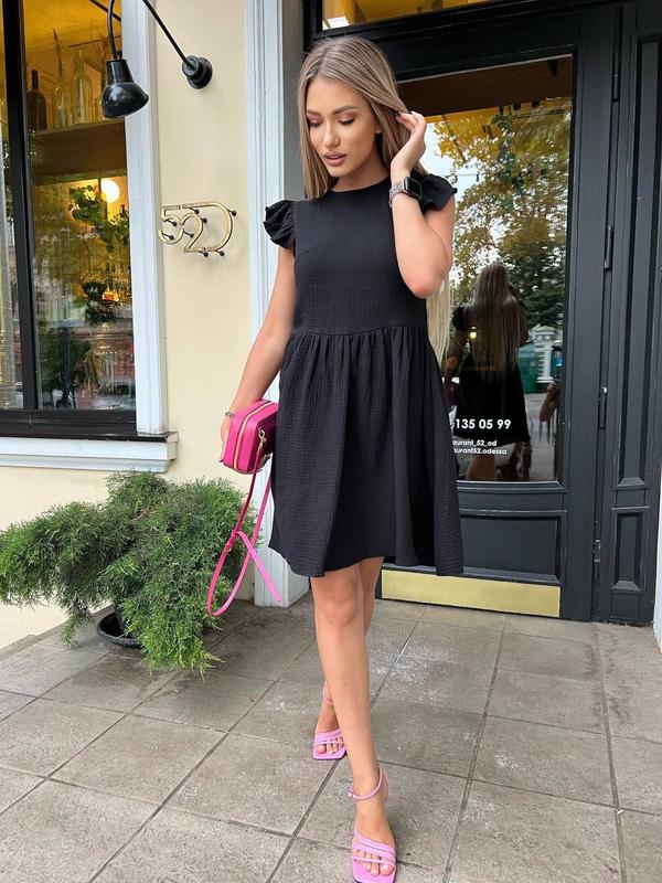 женское летнее платье ✨ Фото прицела 😍 Мод. 1_02/2МР/ИР154 Сукня 🌿 Ткань : муслин Цвета: черный, голубой, темно-зеленый Размеры : 42-44, 46-48, 50-52 наложка