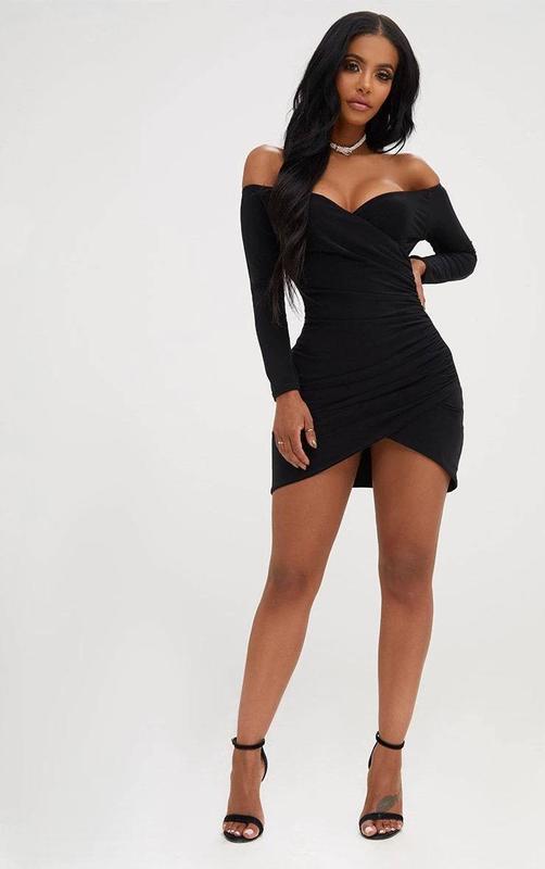Платье по фигуре с приспущенными плечиками 💓 ✨Размер : L (14UK) ОГ – 80 см + Длина - 76 см (без рукавов) Длина рукава - 50 см Ткань: масло (тянется) 🍃новое (с биркой)