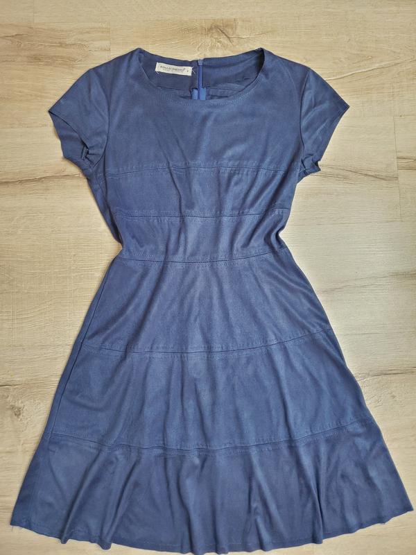 Сукня італійського бренду, одягалася пару разів. Тканина під замш, але не полотна. Сукня гарного насиченого синього кольору.