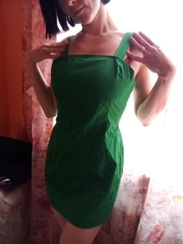 дефект є на фото,але при носці не помітне. Тканина є натуральна,тому трішки минеться. гарного яскравого зеленого кольору . пог-37.пот-35,поб-45. довжина-75. . позаду є блискавка. тканина не тягнеться.