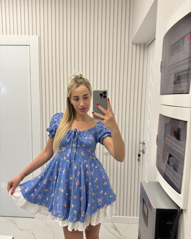 Есть маленький разрыв возле груди, при носке не видно , потому что завязывается прям на разрыве На фото видно