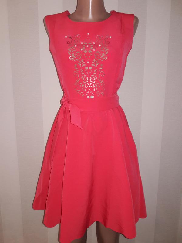 Очень красивое платье ,ярко малинового цвета ,ткань креп +перфорация+жемчуг,размер 44.Новое !!!с БИРКОЙ .Сделаю любые замеры