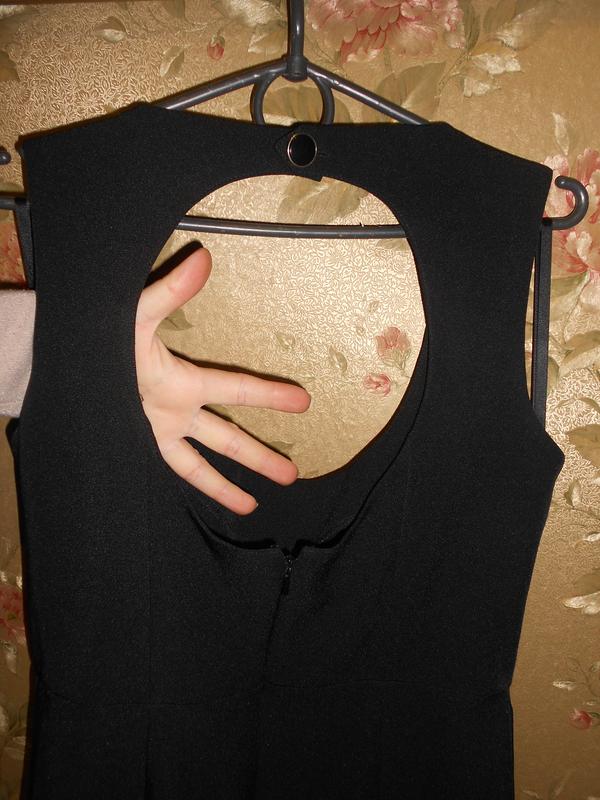Маленьке чорне плаття повинно бути в кожної дівчини. На спині круглий виріз спереду бант з тканини.