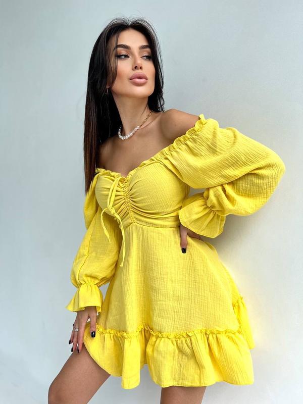 Сукня ▫️Мод 1071 ▫️Тканина - муслін (100 % бавовна) ▫️Розміри - 42-44 і 44-46 ▫️Кольори - чорний, червоний, молочний, олива, жовтий, блакитний, рожевий і принт 🔝Муслінові сукні стали хітом цього сезону і в них не можливо не закохатися з першого погляду🥰 Неймовірно ніжна і легка сукня стане твоєю улюбленою 💓 Верх можна регулювати куліскою, ззаду резинка Ten