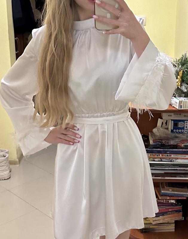 Сукня атласна з пірʼям Є додатково пасок для плаття Відправлення по передоплаті 150 грн