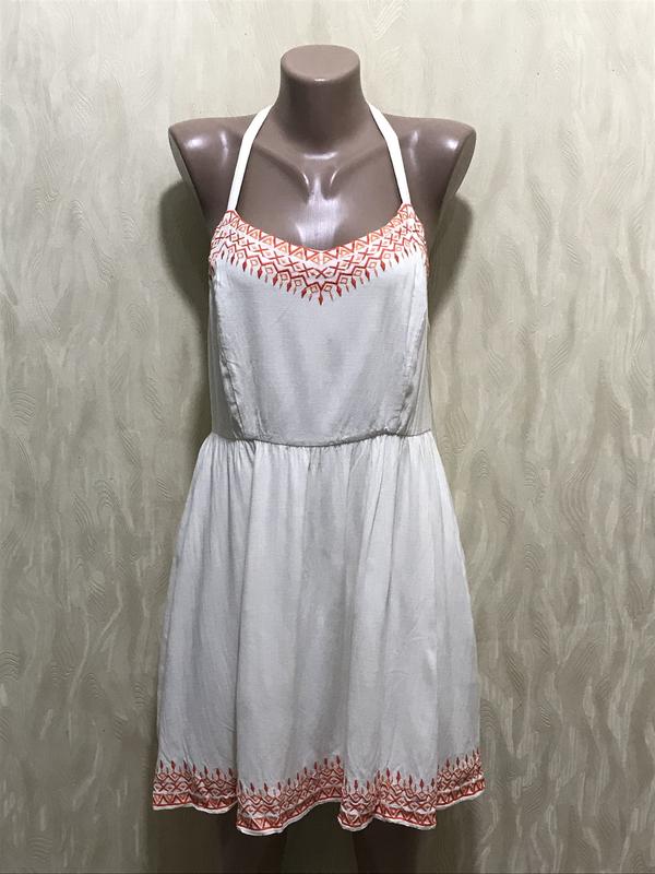 Сукня сарафан з вишивкою із віскози New Look в ідеальному стані. Тканина склад 97% віскоза, 3% еластан. На підкладці, по спинці блискавка. Розмір написаний 12 іде 10-12, дивіться виміри ПОГ 46-47см ПОТ 37-38см ПОБ вільний довжина по спинці від лінії плеча 89см Надсилаю Новою поштою, укрпоштою. 0421