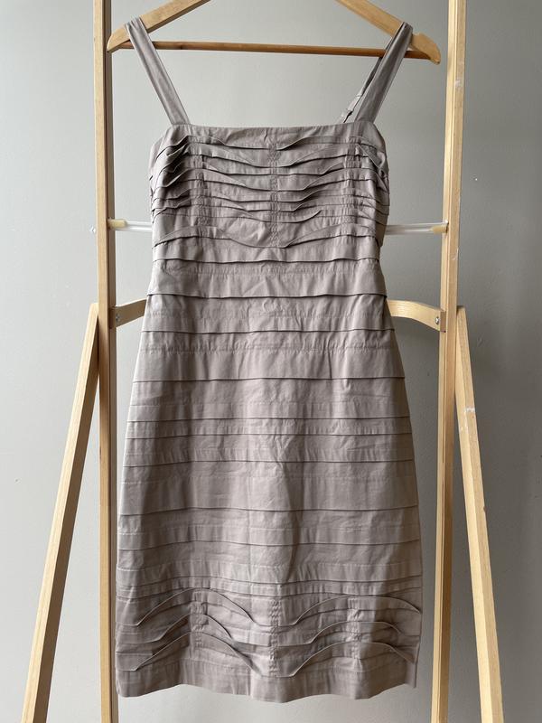 Колір тауп, класно по фігурі, йде прям на хс-ххс. Довжина 69 см, груди 37, талія 33, стегна 43, тканина трохи тягнеться