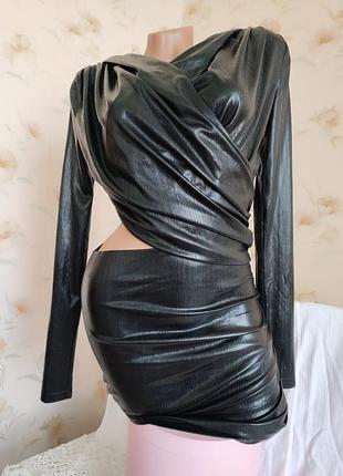 Шикарное мини платье с большим капюшоном. Сбоку кокетливый разрез. Красивая драпировка, узкая прямая юбка. Качественная ткань "дайвинг" с глянцевым эффектом. Это трикотажная ткань последнего поколения. В ее состав входят искусственные волокна, такие как полиэстер, вискоза, спандекс (лайкра). Очень востребована среди модниц, которые называют ее второй кожей. Немного тянется. В нем эффектный секси-образ вам гарантирован. Подойдёт , как вечернее коктейльное платье, так и для повседневной жизни. Смотрится сногсшибательно . Абсолютно новое, с бирками. Не угадали с размером.