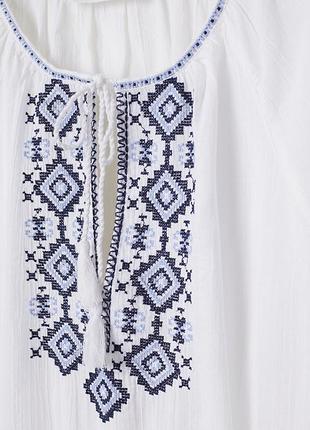 Коротке плаття з жатої бавовняної тканини з вишивкою. Круглий виріз із вирізом і зав'язками зверху, довгі широкі рукави реглан із вузькою гумкою на манжетах, куліска на талії та розкльошена спідниця з мереживною вставкою. Спідниця на підкладці. Бирка з розміром зрізана. пог 48-49 піт 36-48 (гумка з куліскою довжина від плеча 91 стан нової речі, без бирки. Обміну та повернення (помірки) немає! Будь ласка, робіть купівлю задумано, уточнюйте всі деталі перед купівлею. Готово ставлячи запитання, які цікавлять. без паперової бирки. Доставка: Відсилання Новою поштою щодня після обіду.(крім неділя) ❗️100% оплата на карту, не забувайте, будь ласка, враховувати комісію банку.❗️ - Наложки НЕТ!