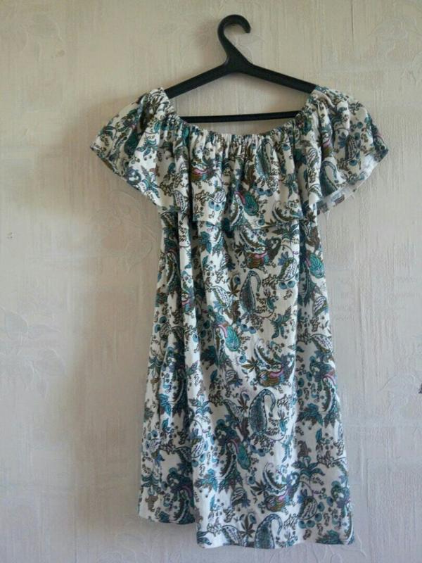 Платье летнее, с опущенными плечами. Надевалось 2 раза. Целое, в отличном качестве.