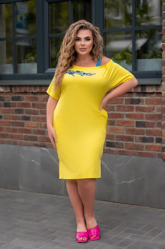 001_0045/59 Сукня Тканина :Софт Колір:Жовтий, електрик Розміри 48-50,52-54,56-58,60-62 48-50 Обхват грудей 110 Обхват талії 106 Обхват стегон 116 52-54 Обхват грудей 114 Обхват талії 112 Обхват стегон 122 56-58 Обхват грудей 120 Обхват талії 116 Обхват стегон 128 60-62 Обхват грудей 124 Обхват талії 120 Обхват стегон 132 Сукня міді літня з кишенями , сезон – літній, стиль повсякденний .Тканина софт, силует - Приталений. В2В