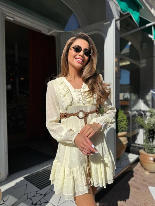 Воздушное легкое шифоновое платье, с акцентным пояском в комплекте❤️ Мод: 2379 Размер: м, л Ткань: шифон на подкладке Длина 83см