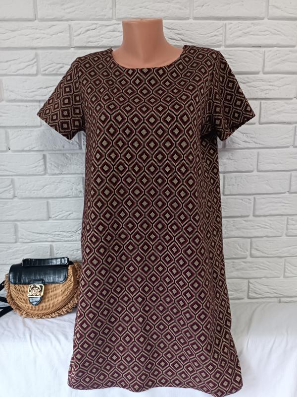 код 18, даний товар є в наявності Опис плаття: Довжина 90см Напівобхват грудей 55 см Напівобхват талії 54см Напівобхват бедра 55см Рукав 19 см, біцепс напівобхват16 см Тканина тянеться, у відмінному стані, красиве плаття