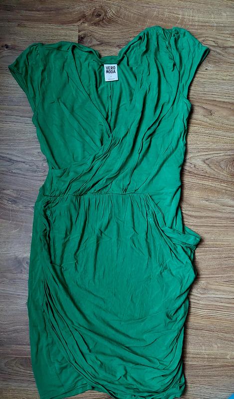Платье по фигуре из трикотажа в зеленом цвете. По наборке размер L, я бы советовала на М.