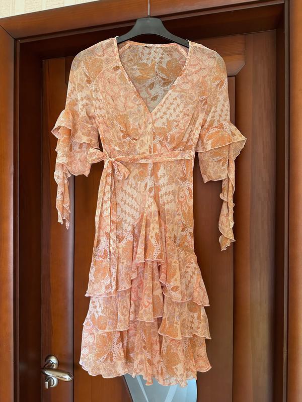 Сукня шифонова пудро рожевого кольору, без підкладки, прозора. ПОГ 42 + чашки, ПОТ 40, довжина 88, рукава + плечі 40