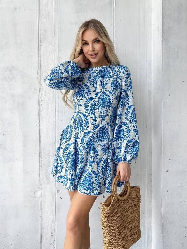 Сукня ▪️Модель : 130 mis ▪️Размер : 42-44;46-48;50-52 ▪️Цвета: Синий, Малина, Зеленый ▪️Тканина : супер софт( принт в стилі Zara ) Нереально женственное, обольстительное, игривое платье длины мини. Объемные длинные рукава с резиночкой на манжетах. Свободная юбка с клиньями, плечи с защипами и силуэтный крой в области талии очень выгодно подчеркивают женственность. Нежная завязка на шее, обольстительная открытая спинка фиксируется скрытой молнией. Не платье, а соблазнительная летняя легкость