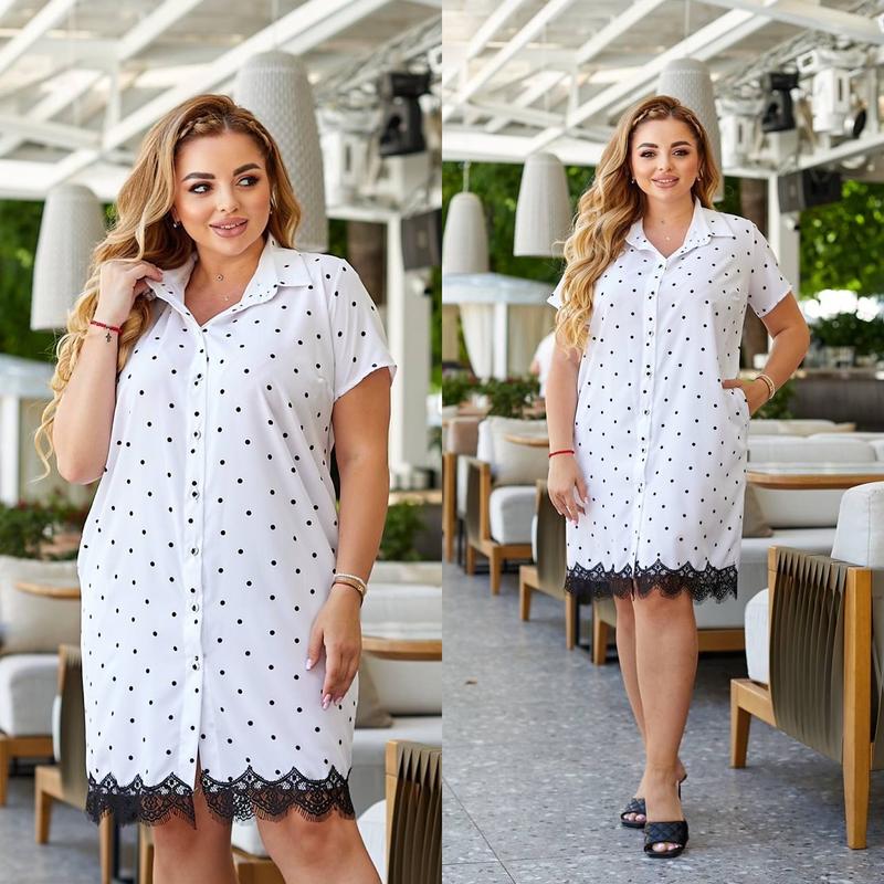 Отримали в наявності вже🔝🔝🔝 Всі Хіт цього сезону 🆕🆕🆕 Стильна оверсайс Сукня-сорочка 🔥🔥🔥 #1363 Ціна 1150 грн Розміри 48-50,52-54,56-58 Тканина супер софт, м'яка та ніжна тканина в горошок, дороге Мереживо Колір чорний, червоний, білий На ґудзиках, з кишенями Заміри👉 Розм.Груди.Талія. Стегна. 48-50 118 120 124 52-54. 124 126 132 56-58 132 128 140 Довжина рукава -21 см Довжина 95 см-+5см мереживо = 99 см На моделі 48-50 Параметри груди 106 см, 86 талія, бедра 110 см ❇️Параметри моделі Ог 110 От 83 Об 110, зріст 166 см