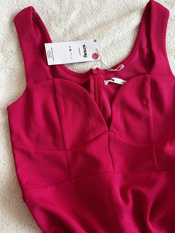 Сукня яскраво рожевого кольору ,розмір XS-S,дуже стильно виглядає ,по заду застібається на замочок ,в низу є не велика розпірка ,нова з біркою